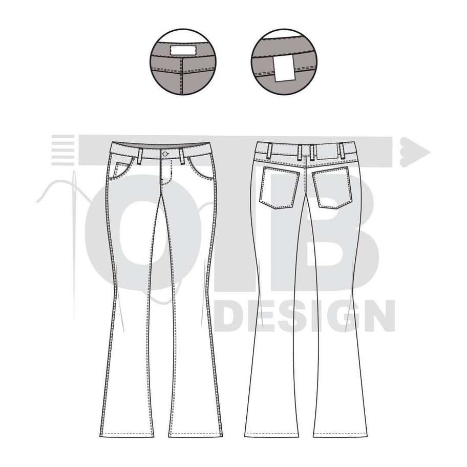 OTB Low-Rise Flare Jeans Vector Flat Technical Drawing Illustration Classic