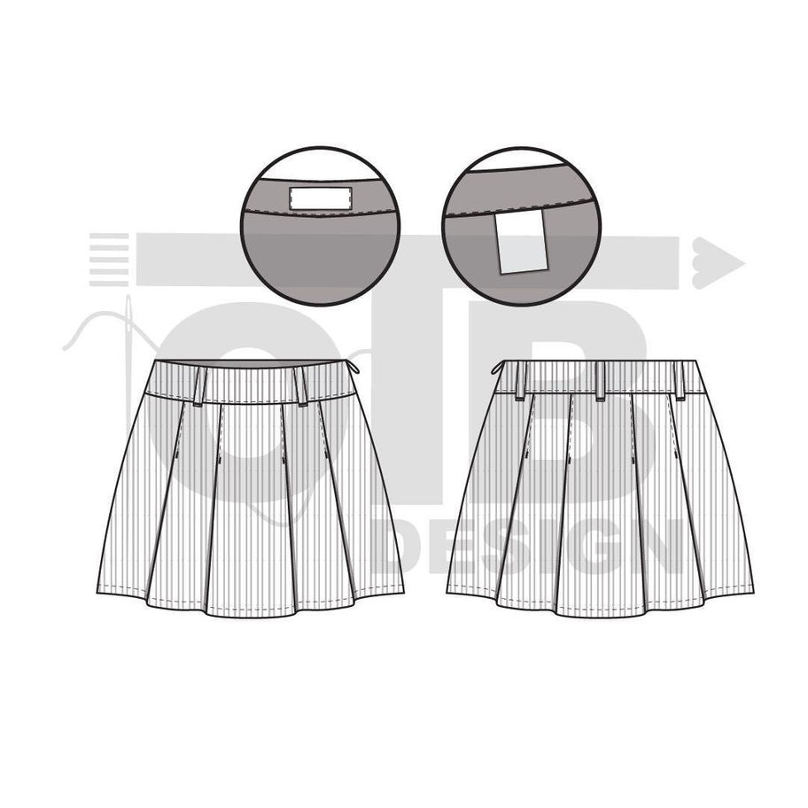 OTB Pleated Corduroy Mini Skirt Vector Flat Technical Drawing Illustration